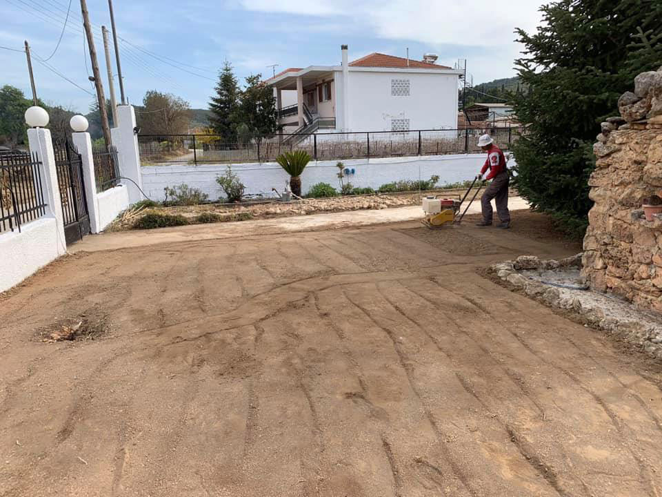 Ετοιμασία του εδάφους, φύτευση φυτών, τοποθέτηση πέτρινων μονοπατιών, κατασκευή λίμνης κ.λπ.